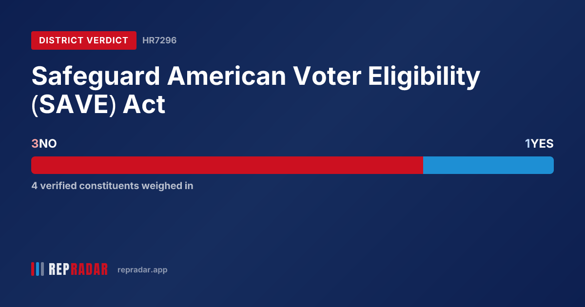 The SAVE Act (H.R. 7296 in the 119th Congress, alternatively titled the SAVE America Act) would require voter registration officials to reject any application for federal election registration unless the applicant provides documentary proof of U.S. citizenship — specifically a passport, birth certificate, naturalization certificate, or REAL ID marked as citizenship-verified. The requirement applies to both new registrations and re-registrations. The bill passed the House 218-213 on February 11, 2026 (only one Democrat, Rep. Henry Cuellar, crossed over). The Senate version — sponsored by Sens. Mike Lee (R-UT) and Lindsey Graham (R-SC) — began deliberations March 17, 2026 and faces filibuster hurdles.